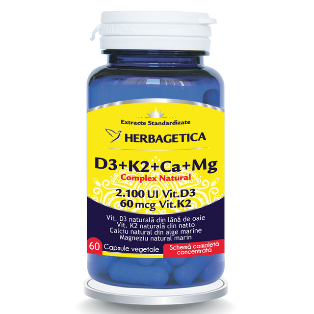 Complex natural D3+K2+Ca+Mg, 60 capsule vegetale, Herbagetica de la Herbagetica