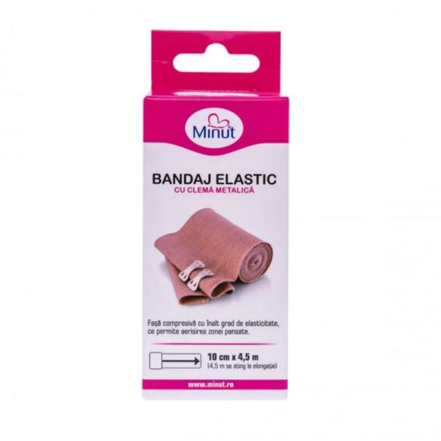Bandaj elastic cu clema, 10cm x 4.5m, 1 bucata, Minut