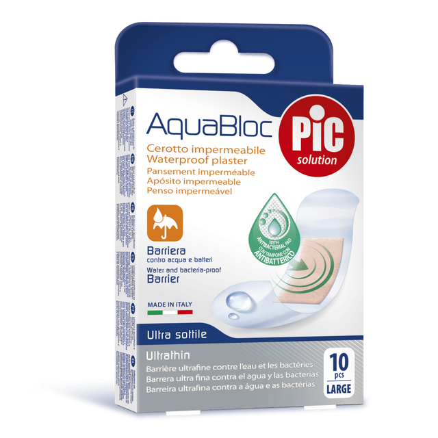 - Cutie cu 10 plasturi Aquabloc, dimensiuni 25 x 72 mm