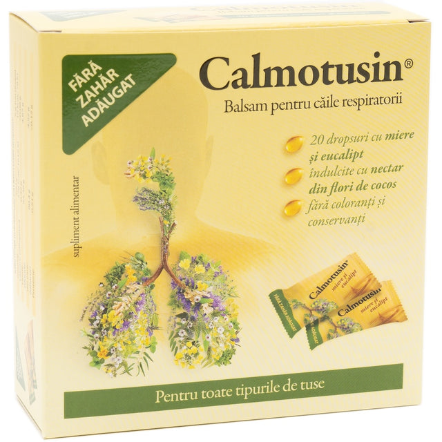 Detalii si beneficii - Calmotusin cu miere si eucalipt bomboane, 20 bucati, Dacia Plant