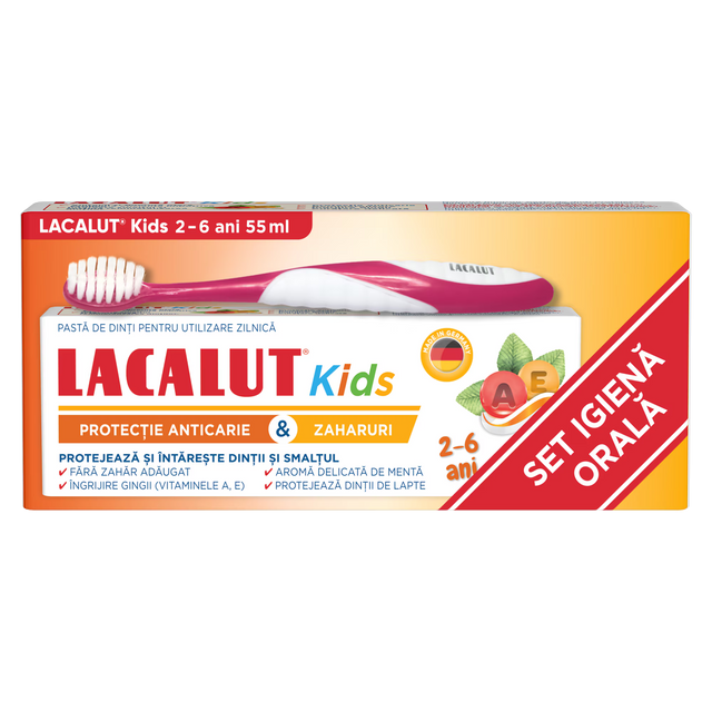 Set ingrijire orala kids 2-6 ani, pasta de dinti Lacalut 55ml + periuta de dinti