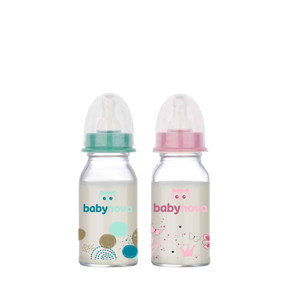 Biberon din sticla decorat, 0-24 luni, 120 ml, BabyNova de la Babynova