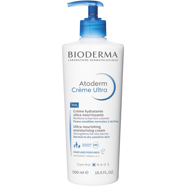 Detalii si beneficii - Crema hidratanta parfumata pentru fata si corp Atoderm Ultra, pele normala, 500ml, Bioderma